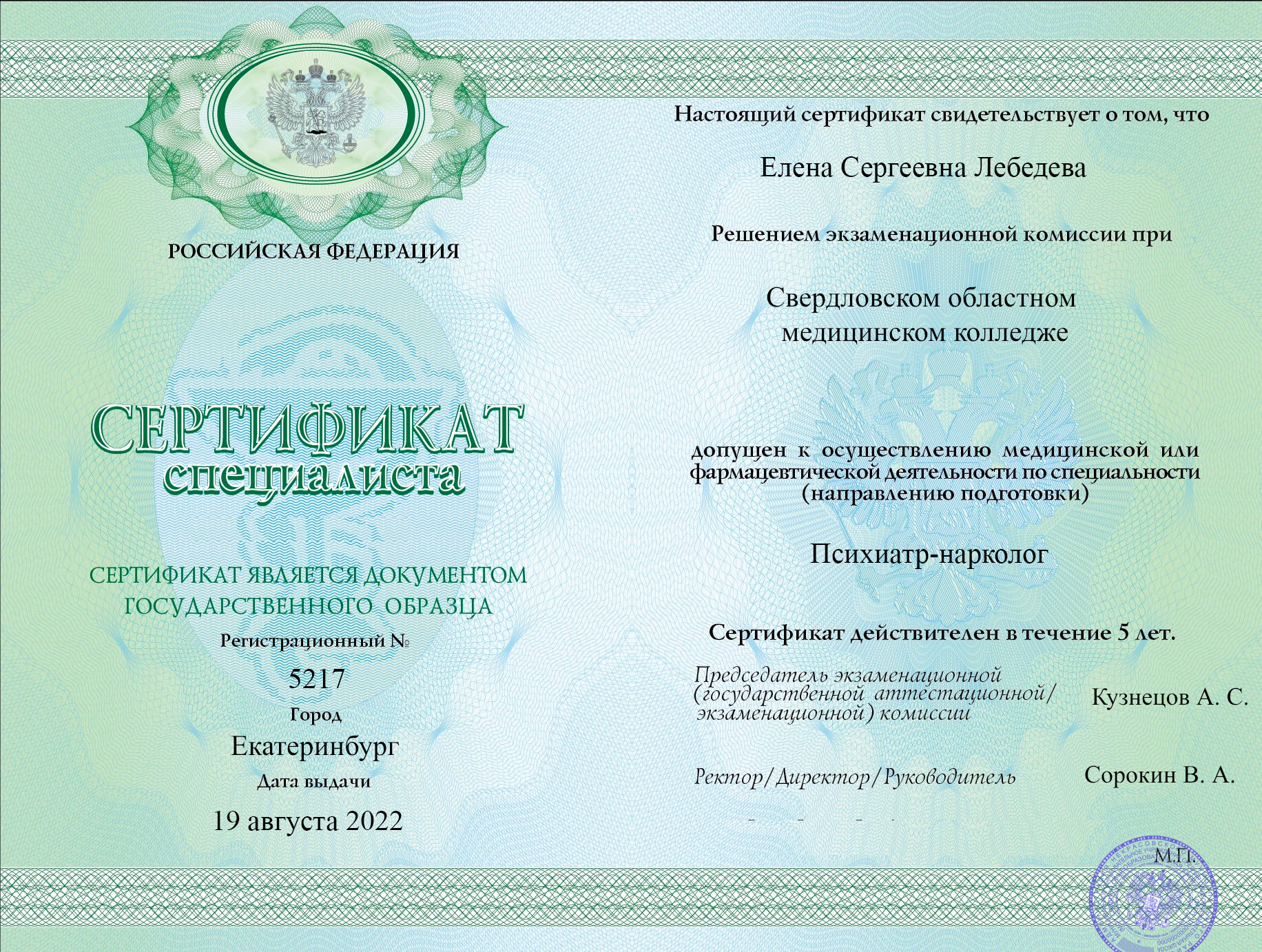 Елена Сергеевна Лебедева врач нарколог клиники доктора Стукаловой в Пензе